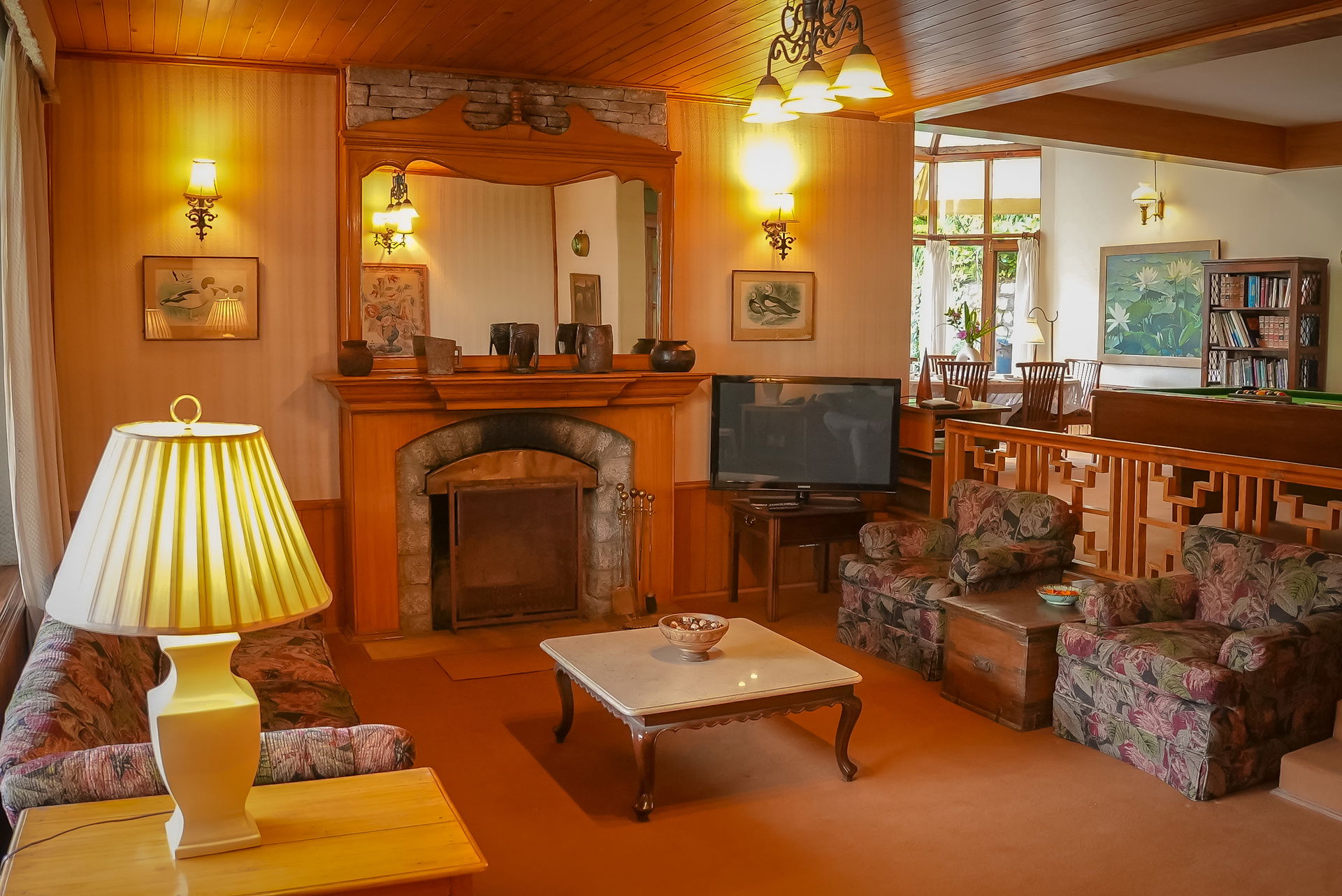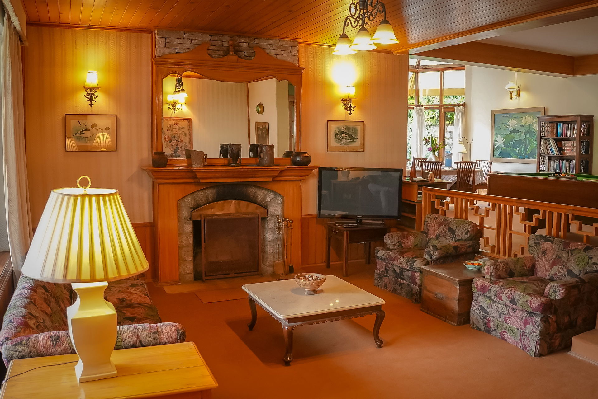 The breathtaking views from each room beckon you outdoors, where chilly evenings are perfectly complemented by a warm bonfire. The villa's well-kept lawn, rich with verdant hues, draws you closer to the serenity of nature. From the moment you arrive, this exquisite villa promises relaxation and comfort for your group, enhanced by the availability of a chef ready to prepare home-cooked meals and a caretaker to ensure your stay is as comfortable as possible.